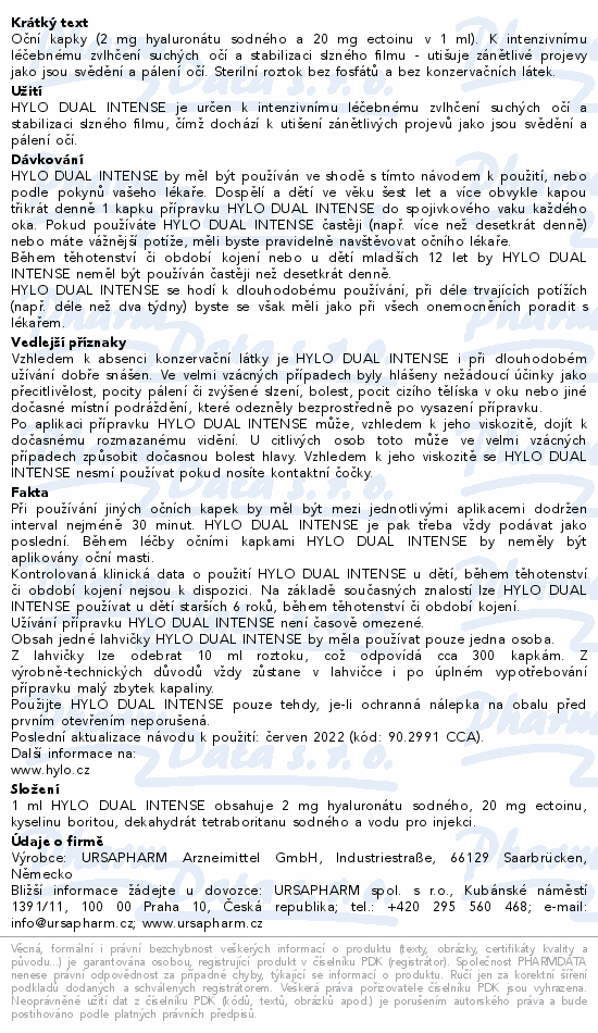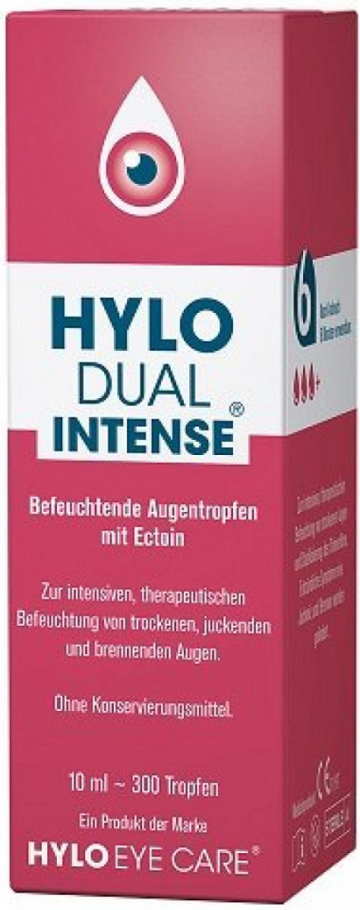 Oční kapky (2 mg hyaluronátu sodného a 20 mg ectoinu v 1 ml). K intenzivnímu léčebnému zvlhčení suchých očí a stabilizaci slzného filmu - utišuje zánětlivé projevy jako jsou svědění a pálení očí. Sterilní roztok bez fosfátů a bez konzervačních látek.