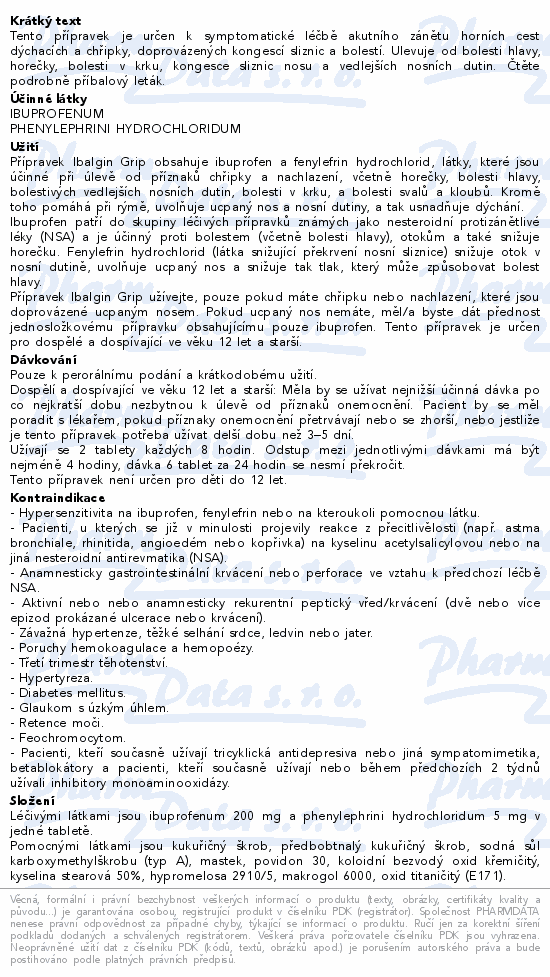 Ibalgin Grip je určen pro dospělé a dospívající od 12 let věku. Pozorně čtěte příbalovou informaci.