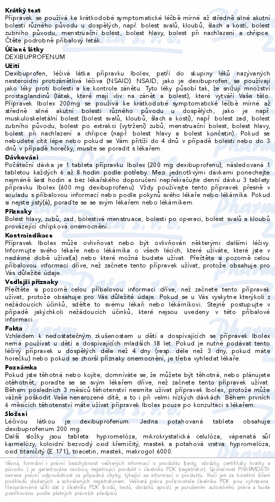 | Farmako-terapeutická skupina, účinné látky: | MUSKULOSKELETÁRNÍ SYSTÉM -> PROTIZÁNĚTLIVÁ A PROTIREVMATICKÁ LÉČIVA -> NESTEROIDNÍ PROTIZÁNĚTLIVÁ A PROTIREVMATICKÁ LÉČIVA -> DERIVÁTY KYSELINY PROPIONOVÉ -> DEXIBUPROFEN |