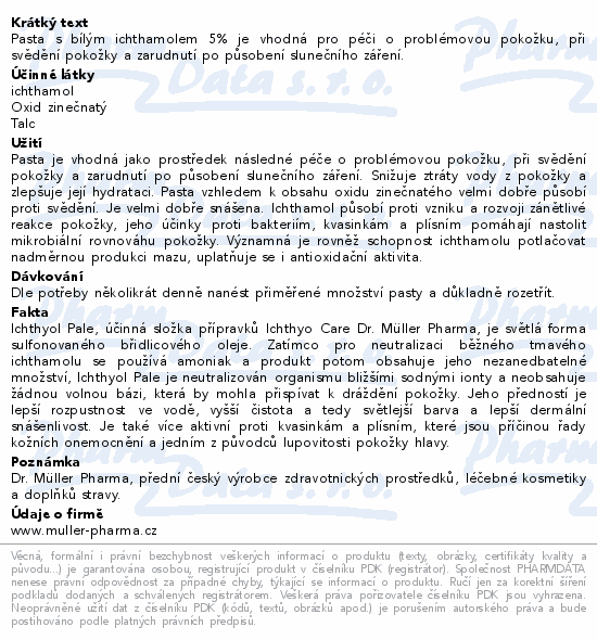 Pasta s bílým ichthamolem 5% je vhodná pro péči o problémovou pokožku, při svědění pokožky a zarudnutí po působení slunečního záření.