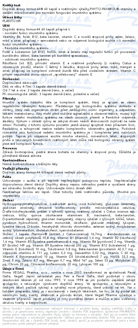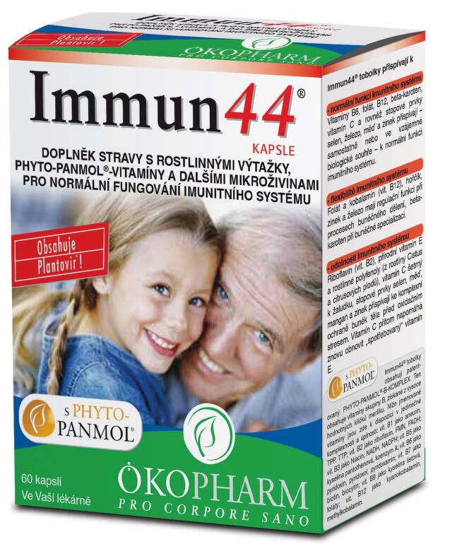 Doplněk stravy Immun44® 60 kapslí s rostlinnými výtažky,PHYTO-PANMOL®-vitamíny a dalšími mikroživinami pro normální fungování imunitního systému.