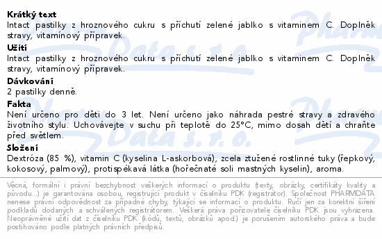 Intact pastilky z hroznového cukru s příchutí zelené jablko s vitaminem C. Doplněk stravy, vitamínový přípravek.