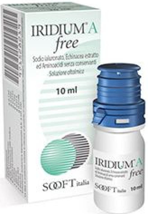 IRIDIUM A Free je sterilní oční roztok, který obsahuje kyselinu hyaluronovou a extrakt z Echinacey. Chrání epitel rohovky a zvyšuje obranyschopnost slzného filmu tím, že jej stabilizuje a podporuje jeho přirozené působení.