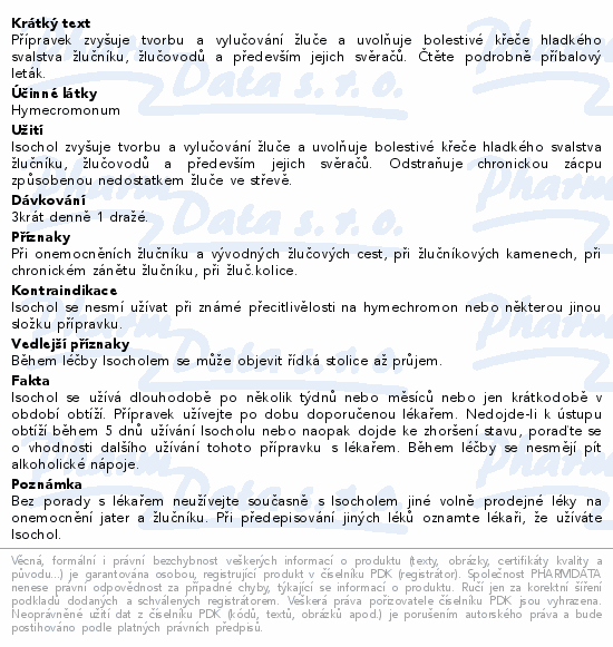 Přípravek Isochol není vhodný pro děti do 14 let. Pozorně čtěte příbalový leták.