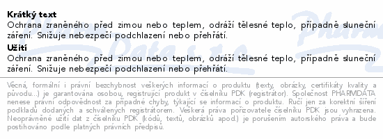 Ochrana zraněného před zimou nebo teplem, odráží tělesné teplo, případně sluneční záření. Snižuje nebezpečí podchlazení nebo přehřátí.