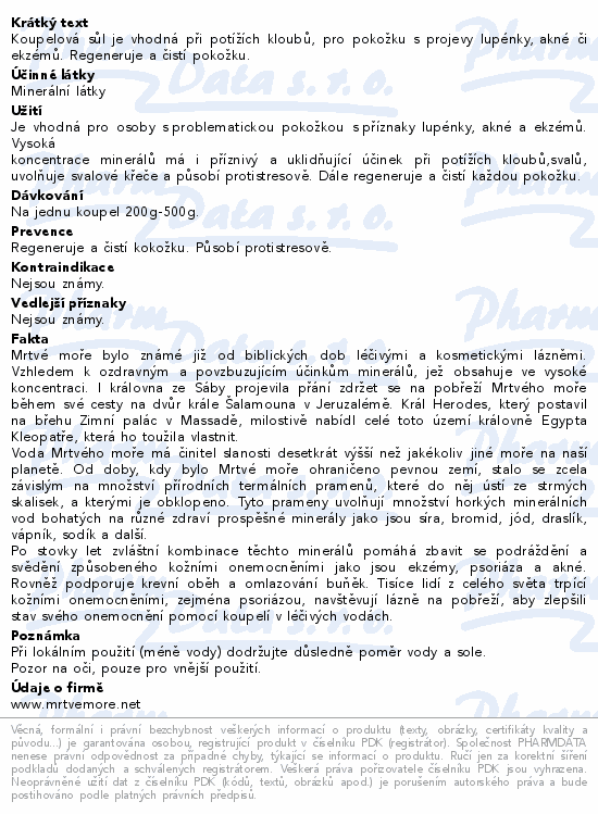 Koupelová sůl je vhodná při potížích kloubů, pro pokožku s projevy lupénky, akné či ekzémů. Regeneruje a čistí pokožku.