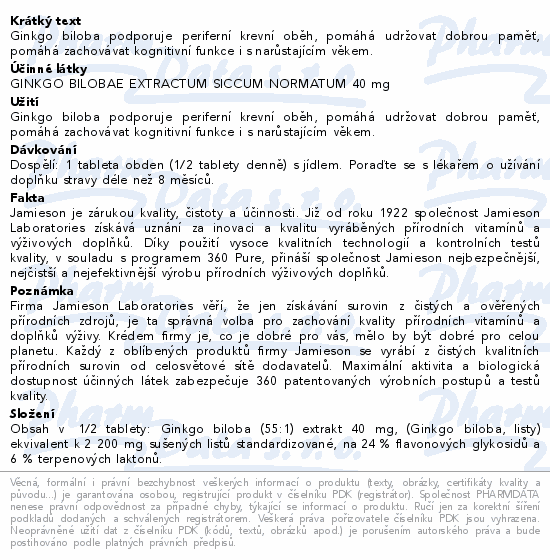 Ginkgo biloba podporuje periferní krevní oběh, pomáhá udržovat dobrou paměť, pomáhá zachovávat kognitivní funkce i s narůstajícím věkem.