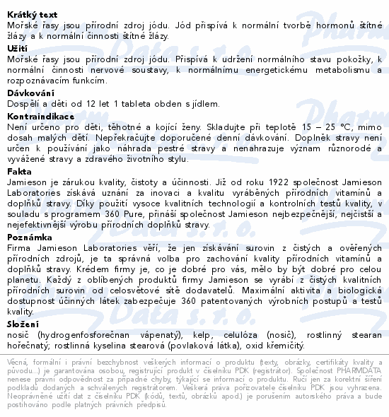 JAMIESON Kelp mořské řasy 650mcg tbl.100