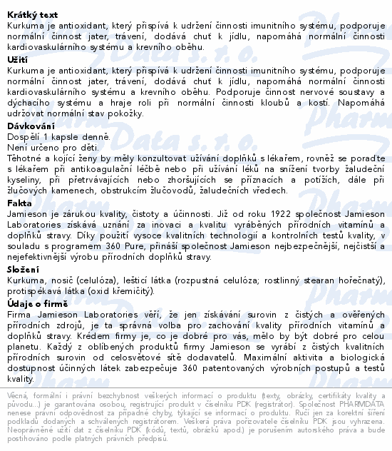 Kurkuma je antioxidant, který přispívá k udržení činnosti imunitního systému, podporuje normální činnost jater, trávení, dodává chuť k jídlu, napomáhá normální činnosti kardiovaskulárního systému a krevního oběhu.