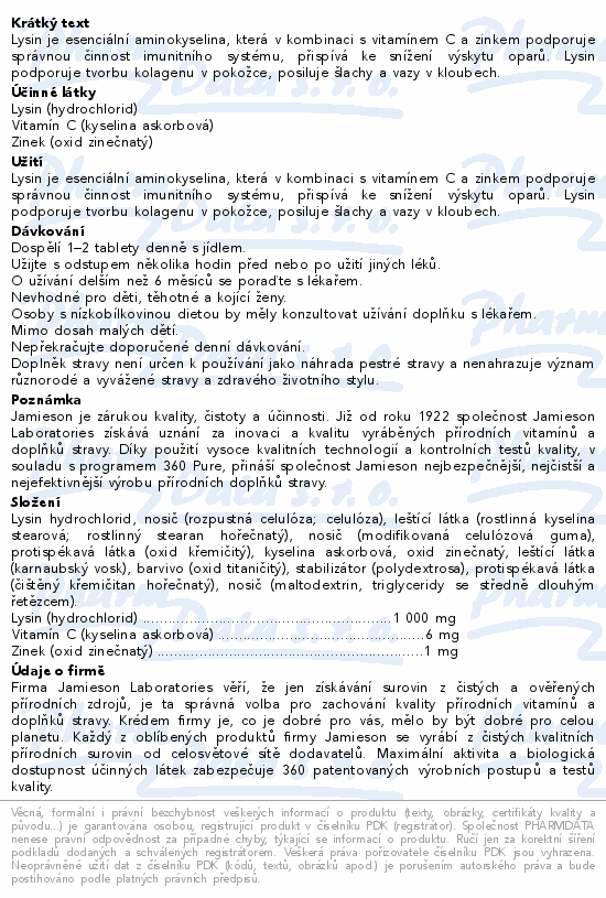 JAMIESON Lysin 1000mg se zinkem a vit.C tbl.60