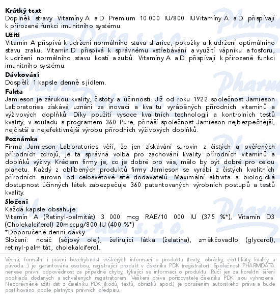 JAMIESON Vitamíny A+D 10000/800 IU Premium cps.100