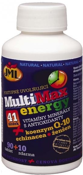 JML MultiMax Power Energy je komplexní doplněk stravy obsahující 44 složek vitamínů, minerálů, bylinných výtažků a ostatních látek k péči o obranný systém a podporu energie a vitality. Pro dokonalé využití jsou aktivní látky z tablet uvolňovány postupně.