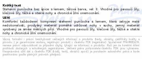 Stehenní punčocha bez špice s lemem, tělová barva, vel. II. Vhodné pro pavoučí žíly, křečové žíly, těžké a oteklé nohy a chronické žilní onemocnění.