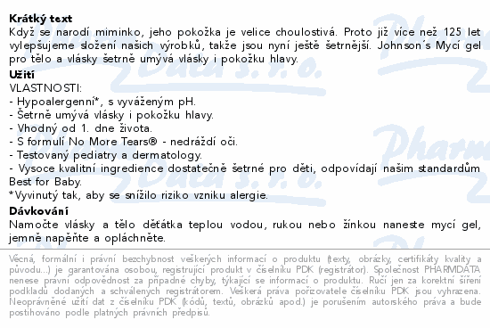 Když se narodí miminko, jeho pokožka je velice choulostivá. Proto již více než 125 let vylepšujeme složení našich výrobků, takže jsou nyní ještě šetrnější. Johnson´s Mycí gel pro tělo a vlásky šetrně umývá vlásky i pokožku hlavy.