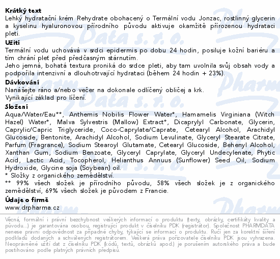 Lehký hydratační krém Rehydrate obohacený o Termální vodu Jonzac, rostlinný glycerin a kyselinu hyaluronovou přírodního původu aktivuje okamžitě přírozenou hydrataci pleti.