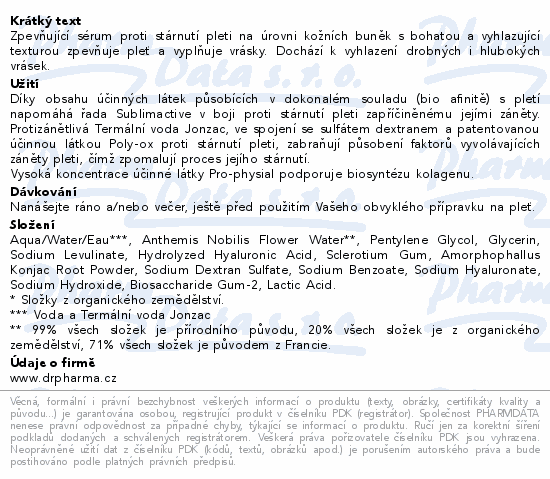 JONZAC SUBLIMACTIVE Sérum na vrásky BIO 30ml