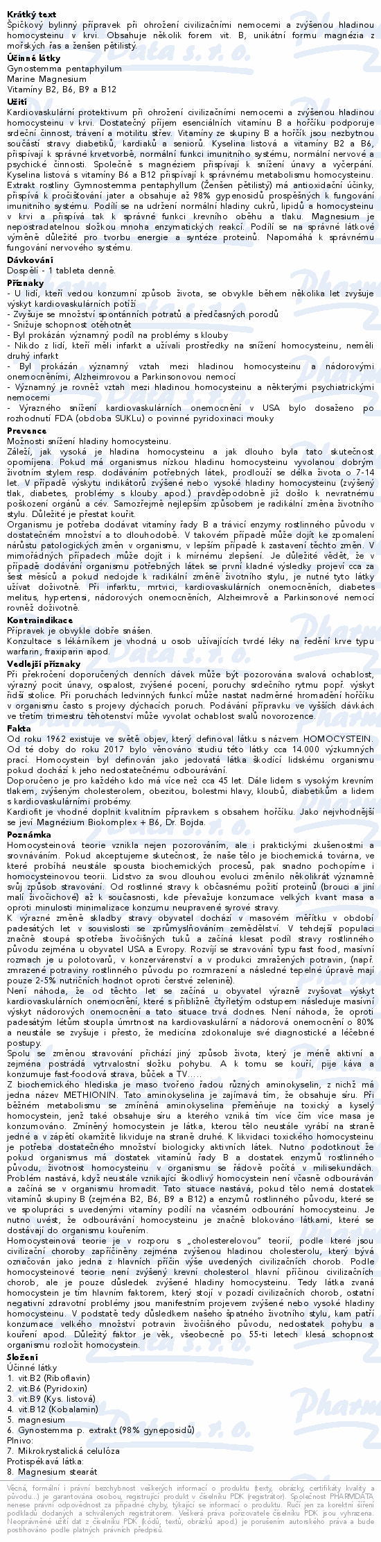 Špičkový bylinný přípravek při ohrožení civilizačními nemocemi a zvýšenou hladinou homocysteinu v krvi. Obsahuje několik forem vit. B, unikátní formu magnézia z mořských řas a ženšen pětilistý.