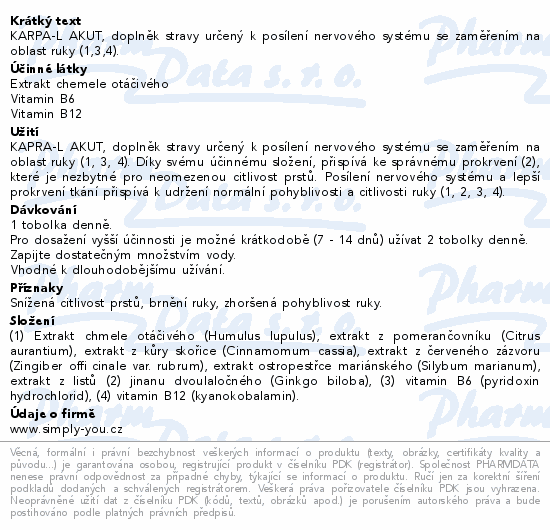 KARPA-L AKUT, doplněk stravy určený k posílení nervového systému se zaměřením na oblast ruky (1,3,4).