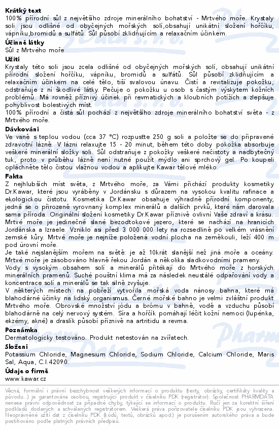 KAWAR Koupelová sůl z Mrtvého moře 1000g