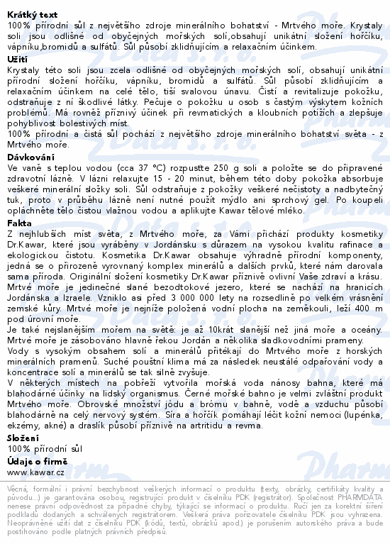 KAWAR Koupelová sůl z Mrtvého moře 2000g