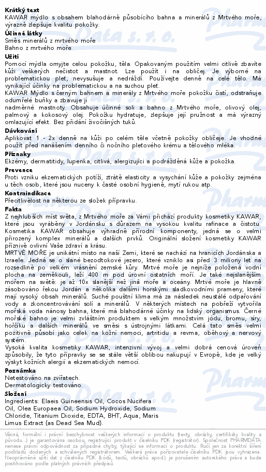 KAWAR mýdlo s obsahem blahodárně působícího bahna a minerálů z Mrtvého moře, výrazně zlepšuje kvalitu pokožky.