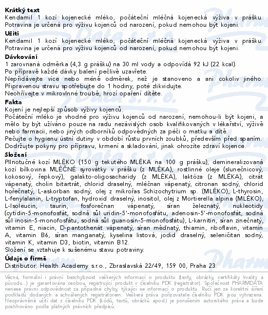 Kendamil 1 kozí počáteční kojenecké mléko 500g