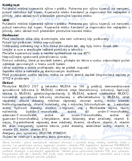 Počáteční mléčná kojenecká výživa v prášku. Potravina pro výživu kojenců od narození, pokud nemohou být kojeni. Kojenecké mléko Kendamil je inspirováno tím nejlepším z přírody. Jeho základ tvoří především plnotučné kravské mléko.