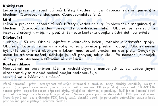Léčba a prevence napadnutí psů klíšťaty (Ixodes ricinus, Rhipicephalus sanguineus) a blechami (Ctenocephalides canis, Ctenocephalides felis).