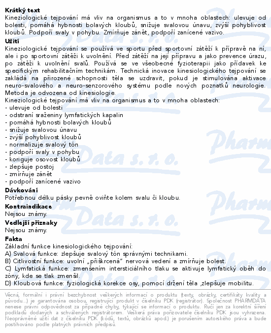 Kineziologické tejpování má vliv na organismus a to v mnoha oblastech: ulevuje od bolesti, pomáhá hybnosti bolavých kloubů, snižuje svalovou únavu, zvýší pohyblivost kloubů. Podpoří svaly v pohybu. Zmírňuje zánět, podpoří zanícené vazivo.