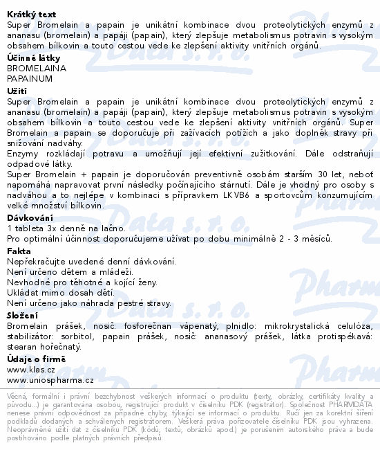 Super Bromelain a papain je unikátní kombinace dvou proteolytických enzymů z ananasu (bromelain) a papáji (papain), který zlepšuje metabolismus potravin s vysokým obsahem bílkovin a touto cestou vede ke zlepšení aktivity vnitřních orgánů.