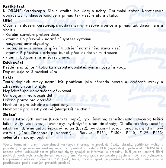 KLORANE Keratincaps. Síla a vitalita. Na vlasy a nehty. Optimální složení Keratincaps dodává živiny vlasové cibulce a přináší tak vlasům sílu a vitalitu.