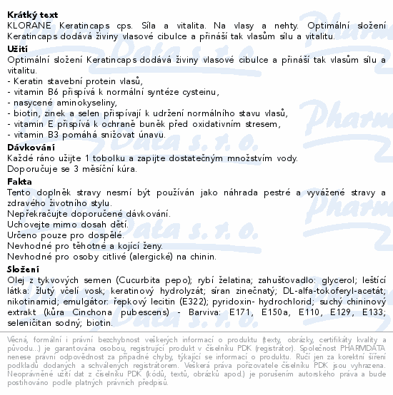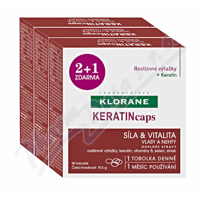 KLORANE Keratincaps cps. Síla a vitalita. Na vlasy a nehty. Optimální složení Keratincaps dodává živiny vlasové cibulce a přináší tak vlasům sílu a vitalitu.