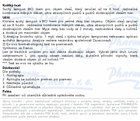 KLORANE Suchý šampon s BIO lnem pro objem 150ml