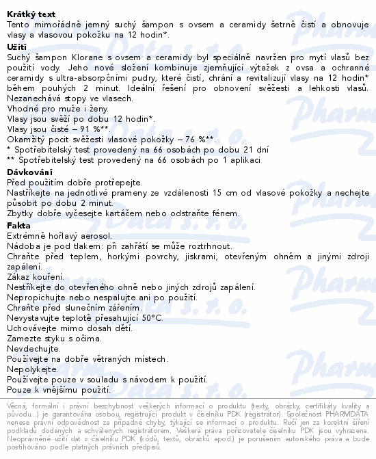 KLORANE Suchý šampon s ovsem a ceramidy 150ml