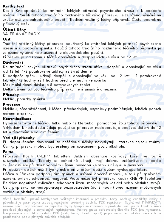 Kozlík Kneipp slouží ke zmírnění lehkých příznaků psychického stresu a k podpoře spánku. Použití tohoto tradičního rostlinného léčivého přípravku je založeno výlučně na zkušenosti z dlouhodobého použití. Tradiční rostlinný léčivý přípravek. Čtěte pozorně příbalový leták.