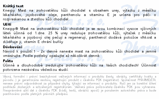Kneipp mast na zrohovatělou kůži chodidel jemně vmasírujte do pokožky. Opakujte dle potřeby několikrát denně.