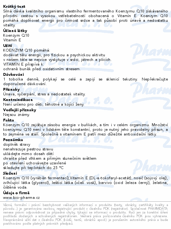 Koenzym Q10 Forte 60mg+Vit.E tob.30+30 Bio-Pharma