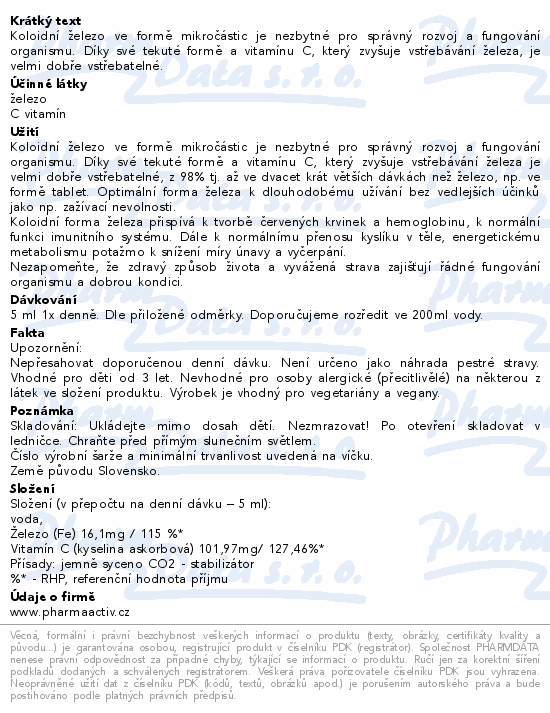 Koloidní železo ve formě mikročástic je nezbytné pro správný rozvoj a fungování organismu. Díky své tekuté formě a vitamínu C, který zvyšuje vstřebávání železa, je velmi dobře vstřebatelné.