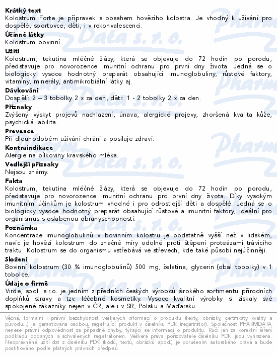 Kolostrum Forte je přípravek s obsahem hovězího kolostra. Je vhodný k užívání pro dospělé, sportovce, děti, i v rekonvalescenci.