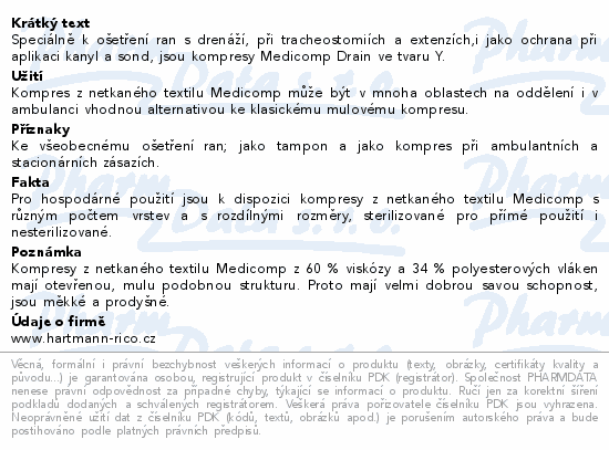 Speciálně k ošetření ran s drenáží, při tracheostomiích a extenzích,i jako ochrana při aplikaci kanyl a sond, jsou kompresy Medicomp Drain ve tvaru Y.