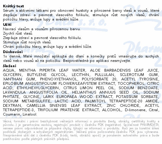 Sérum s aktivními látkami pro obnovení hustoty a přirozené barvy vlasů a vousů, které zlepšuje zdraví a pevnost vlasového folikulu, stimuluje růst nových vlasů, chrání pokožku hlavy, snižuje lupy a svědění kůže.