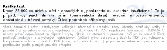 Kreon 25 000 se užívá u dětí a dospělých s „pankreatickou exokrinní insuficiencí“. To je případ, kdy jejich slinivka břišní (pankreatická žláza) nevytváří množství enzymů, dostatečné k trávení potravy. Čtěte pozorně příbalový leták.