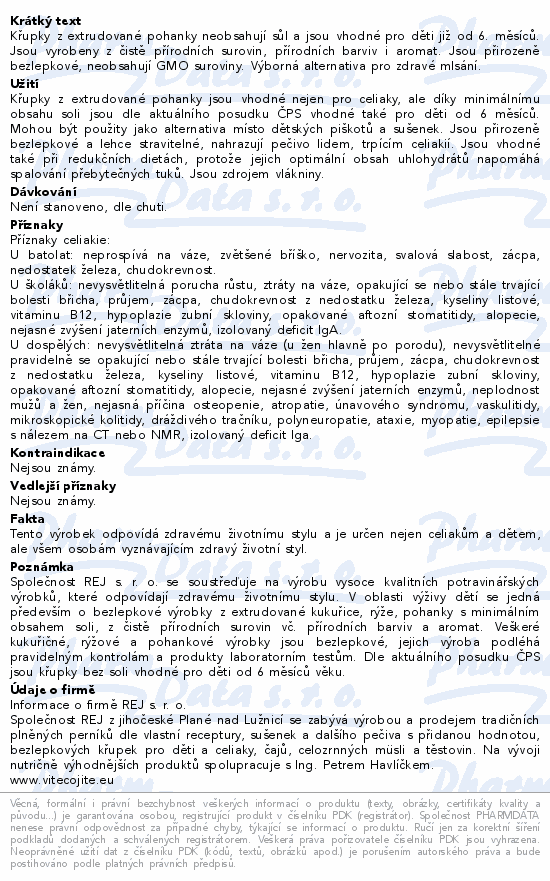 Křupky z extrudované pohanky neobsahují sůl a jsou vhodné pro děti již od 6. měsíců. Jsou vyrobeny z čistě přírodních surovin, přírodních barviv i aromat. Jsou přirozeně bezlepkové, neobsahují GMO suroviny. Výborná alternativa pro zdravé mlsání.