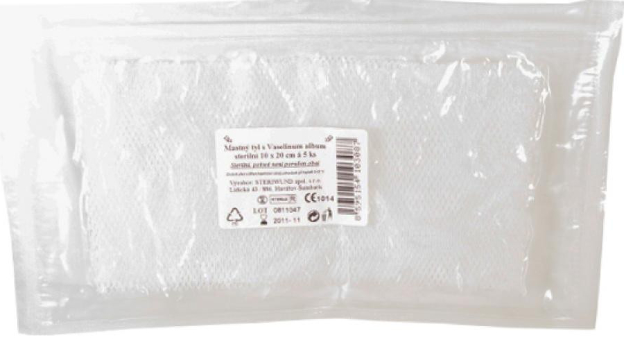 Sterilní mastný tyl je vyroben z obvazové textilie S20 - vysoce porézní hydrofobní obvaz z chemických vláken, určený pro impregnaci léčiv v tekutém nebo masťovém základu.