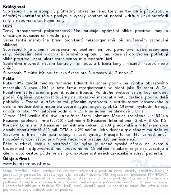 Suprasorb F je samolepicí, průhledný obvaz na rány, který se flexibilně přizpůsobuje náročným konturám těla a poskytuje vysoký komfort při nošení. Udržuje vlhké prostředí rány a napomáhá tak hojení rány.