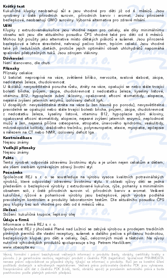 Kukuřičné křupky neobsahují sůl a jsou vhodné pro děti již od 6. měsíců. Jsou vyrobeny z čistě přírodních surovin, přírodních barviv i aromat. Jsou přirozeně bezlepkové, neobsahují GMO suroviny. Výborná alternativa pro zdravé mlsání.