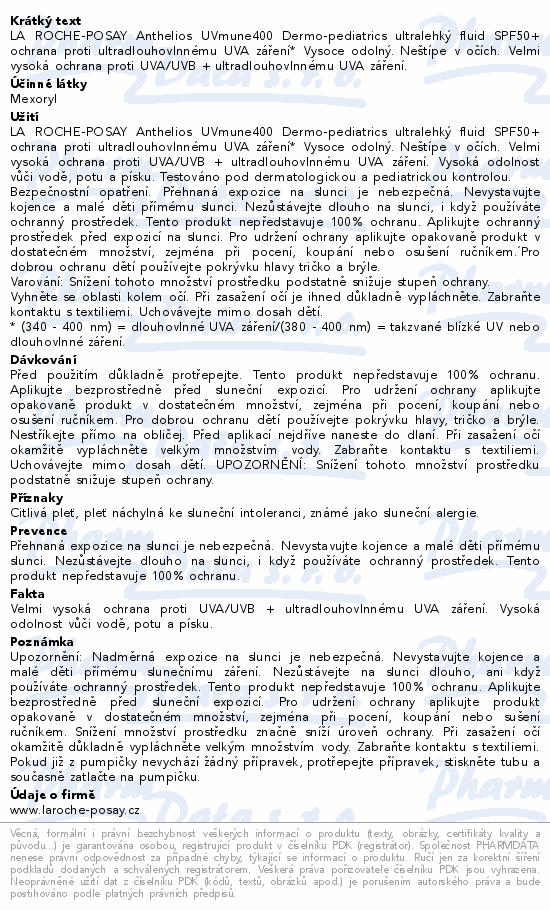 LA ROCHE-POSAY Anthelios UVmune400 Dermo-pediatrics ultralehký fluid SPF50+ ochrana proti ultradlouhovlnnému UVA záření* Vysoce odolný. Neštípe v očích. Velmi vysoká ochrana proti UVA/UVB + ultradlouhovlnnému UVA záření.