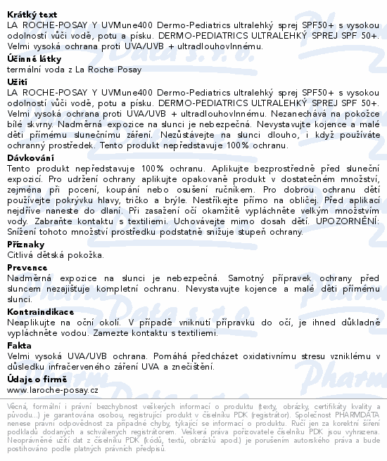 LA ROCHE-POSAY Y UVMune400 Dermo-Pediatrics ultralehký sprej SPF50+ s vysokou odolností vůči vodě, potu a písku. DERMO-PEDIATRICS ULTRALEHKÝ SPREJ SPF 50+. Velmi vysoká ochrana proti UVA/UVB + ultradlouhovlnnému.