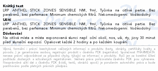 LRP ANTHEL STICK ZONES SENSIBLE NM, 9ml, Tyčinka na citlivé partie. Bez parabenů, bez parfemace. Minimum chemických filtrů. Nekomedogenní. Voděodolný.