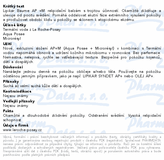 Lipikar Baume AP +M relipidační balzám s trojitou účinností. Okamžitě zklidňuje a ulevuje od pocitu svědění. Pomáhá oddalovat akutní fáze extrémního vysušení pokožky a prodlužovat období klidu u pokožky se sklonem k atopickému ekzému.
